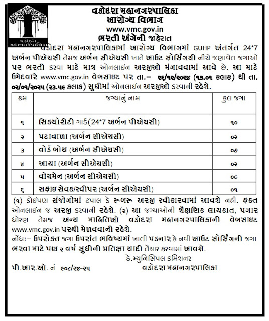 VMC Recruitment / Vacancy 2024 | Vadodara Municipal Corporation Bharti 2024 | vmc.gov.in/Recruitment/Recruitment.aspx